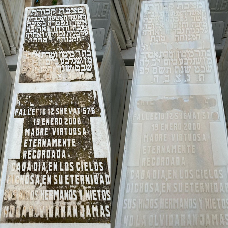 Un empleado de nuestro cementerio realizará una limpieza de la lápida con productos especiales, quitando la suciedad y manchas más difíciles. Le enviaremos una foto una vez finalizado el servicio.